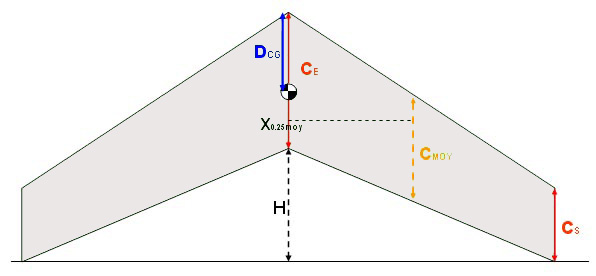 Ce coefficient doit être compris entre 5% et 10%. Au delà de 10% l'aile sera centrée trop avant, elle va "marsouiner", en dessous de 5%, elle risque d'etre centrée trop arrière et être délicate à piloter.